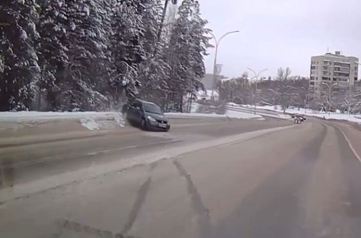 В Сарове Нижегородской области водитель не удержал автомобиль на повороте, в результате чего его развернуло и вынесло на встречную полосу. К счастью, серьёзных последствий удалось избежать.