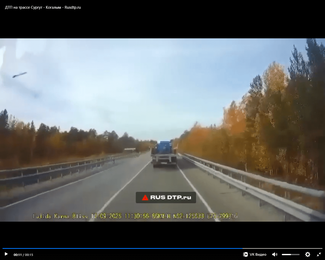 ДТП на трассе Сургут — Когалым. Во время движения в голову водителя тягача со встречной полосы прилетел какой-то предмет. Мужчина получил открытую черепно-мозговую травму, но выжил и съехал в кювет.