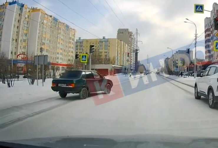 Улица Югорская в Сургуте. Водитель «Лады» выезжал со двора и не вписался в поворот, в результате чего машину развернуло.