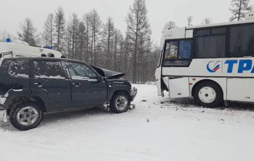 1 апреля в 9:15 утра на 364-м километре федеральной трассы «Лена» в Нерюнгринском районе Якутии 23-летний водитель «Нивы» не учел дорожные и метеорологические условия, выехал на полосу, предназначенную для встречного движения и совершил столкновение с автобусом КАВЗ.