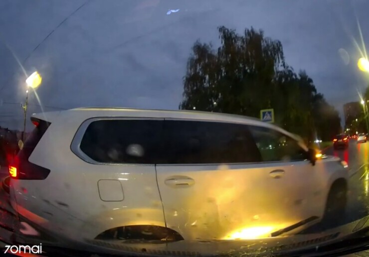 Экстренного торможения не видно. Звездит. На белом джипе действительно стадо оленей. Но разумный человек, если не собирается съезжать с круга на первом съезде, будет двигаться по второй полосе. По ПДД автор прав, но заниматься кузовным ремонтом, даже если и был прав, удовольствие сомнительное. Впрочем о вкусах не спорят. Извращенцев хватает.