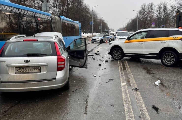 ДТП произошло 14 февраля на улице Свободы в Москве. Kia выехал на встречную полосу и столкнулся с такси, а также автобусом. Выяснилось, что у водителя, вылетевшего на «встречку», оторвался тромб. Мужчина скончался на месте. Камера запечатлела момент столкновения.
