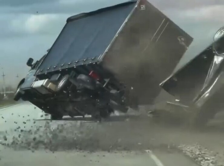 Ну так при таких размерах коробов и отсутствие грузов и должно было случиться. А что, тенты нельзя было снять? Лень? Да что им будет — думал водитель…