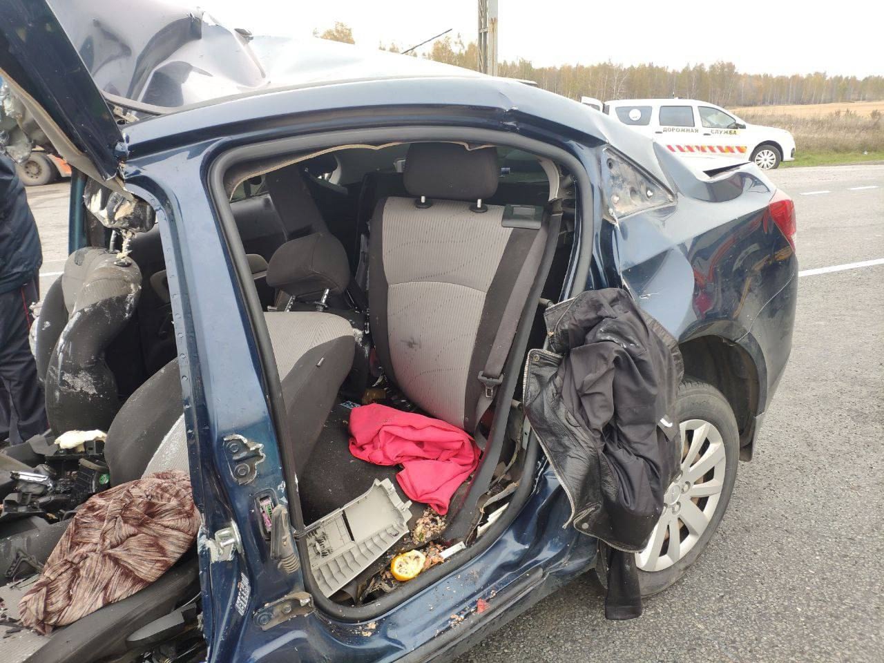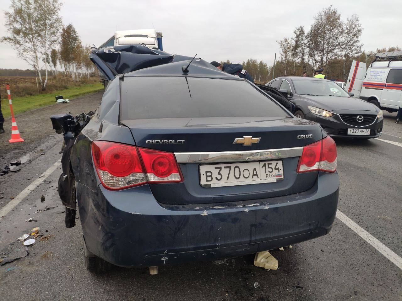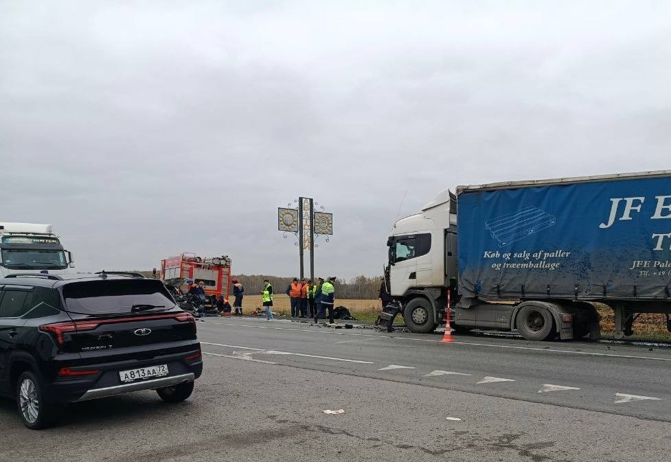 ДТП произошло сегодня в 8 утра на трассе Тюмень — Омск в Ишимском округе. Водитель автомобиля Chevrolet Cruze выехал на встречную полосу и столкнулся с большегрузом Scania.