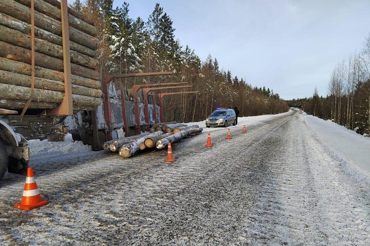 Что мне подсказывает, что лесовоз от сюда вылетел. Дал по тормозам, но прицеп по инерции на встречку