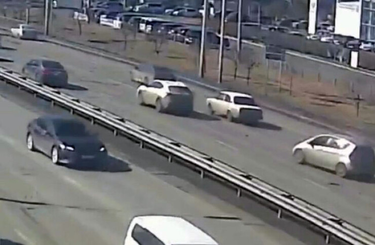 На улице 9 Мая в Красноярске минивэн при перестроении столкнулся с несколькими стоящими на светофоре автомобилями. По словам очевидцев, виновник находился в состоянии алкогольного опьянения.