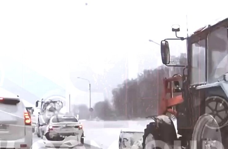 В Кстово Нижегородской области, на автодороге Подвалиха-Караулово, водитель легковушки пытался протиснуться между потоком машин и трактором, в результате чего лишился заднего бампера.