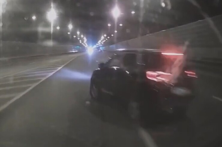 672-й км Московского шоссе (Тосненский р-н, Ям-Ижоры). По словам водителя фургона с видеорегистратором, водитель кроссовера пытался развернуться из средней полосы в месте, где такой манёвр запрещён.