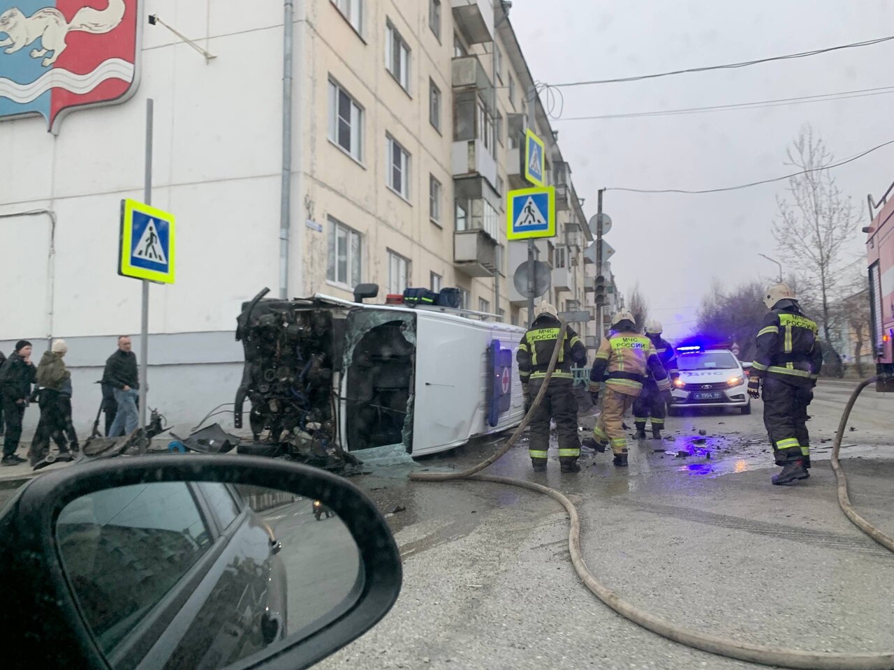 В Краснотурьинске на перекрёстке улиц Чкалова и Ленинского Комсомола произошло ДТП с участием машины скорой помощи. Спецавтомобиль спешил на вызов с включёнными проблесковыми маячками и сиреной, проехал на красный свет и столкнулся с внедорожником Haval.
