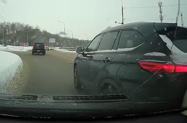 ДТП произошло в Подольске. Водитель автомобиля с видеорегистратором двигался по перекрестку с круговым движением в левой полосе, как вдруг к нему начал прижиматься черный кроссовер, который, по всей видимости, объезжал препятствие на своей полосе. Столкновения избежать не удалось.
