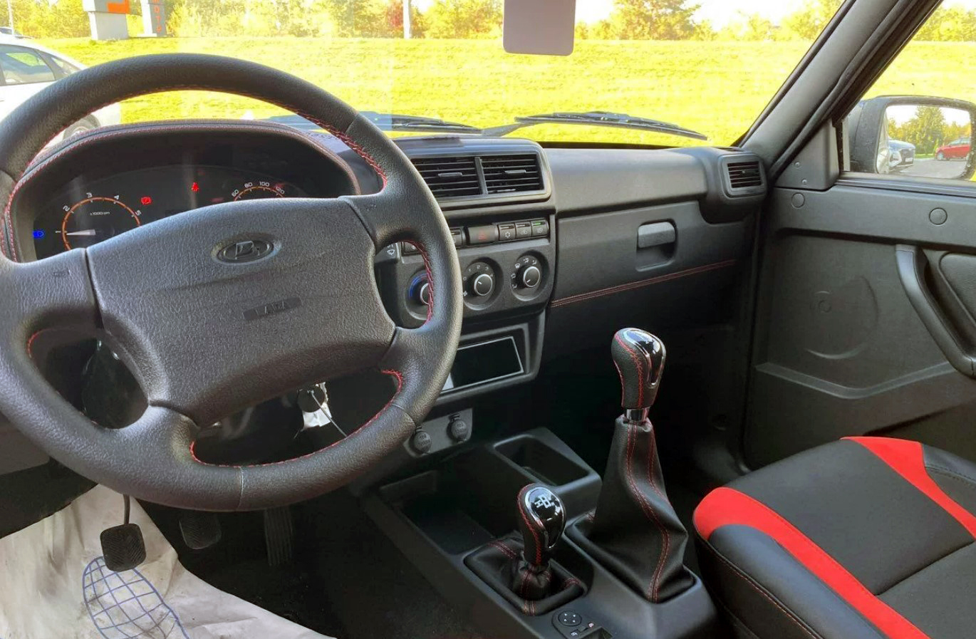 В салоне нас встречают новые кресла с развитой боковой поддержкой и стильной красной прострочкой. Внешне они выглядят неплохо. Однако беда «Нивы» была не в форме сидений, а в фатально неправильной геометрии посадки. Руль по-прежнему смещен относительно центра водительского места, педальный узел тесен, а рычаг КПП находится где-то в параллельной вселенной — до него приходится тянуться. Новые «ковши» никак не исправляют эти врожденные анатомические дефекты кузова.