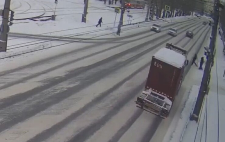 ДТП произошло на улице Машиностроителей в Екатеринбурге. Мужчина переходил дорогу и попал под колёса грузовика. Момент аварии зафиксировала камера. О состоянии пострадавшего информации нет.