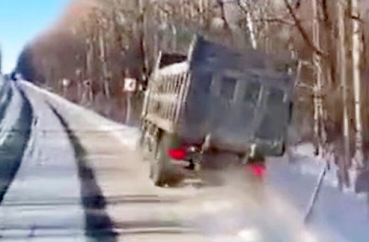 Возле села Восход в Хабаровском крае водитель самосвала уснул за рулем, съехал в кювет и опрокинулся. Момент ДТП на камеру мобильного телефона запечатлел водитель попутного грузовика.