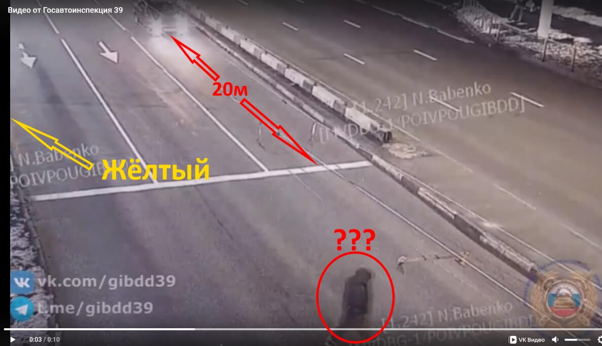 Бомжеватого пешехода не оправдываю! Но за 20 метров до Стоп-линии для BMWиста загорелся уже запрещающий сигнал светофора! До перекрестка за 100 метров с начала мигания зелёного нужно было снизить скорость и остановиться, а не проскакивать тапком в пол!