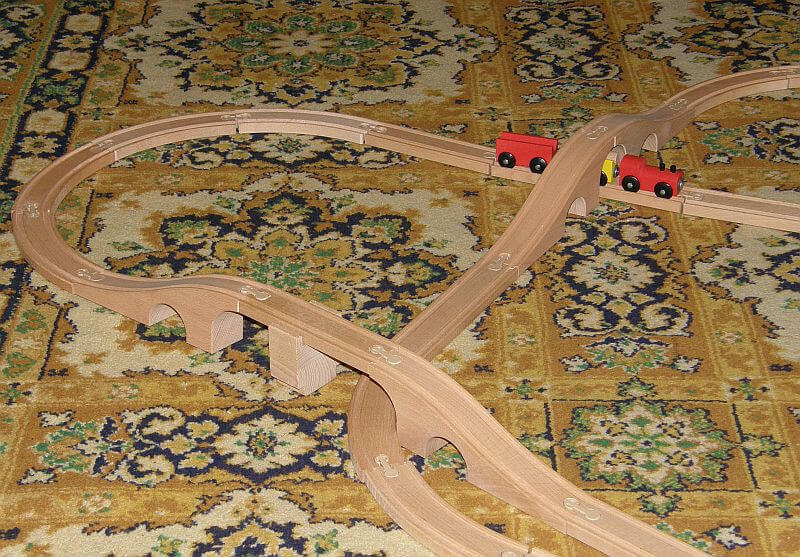 я там купил несколько (4-6) комплектов деревянной :о) «шелезной» дороги для младшего. охренительная тема