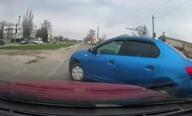 ДТП произошло на улице 26 Бакинских Комиссаров в Луганске. Водитель «Логана» пытался развернуться с правой полосы и столкнулся с автомобилем, в котором установлен видеорегистратор.