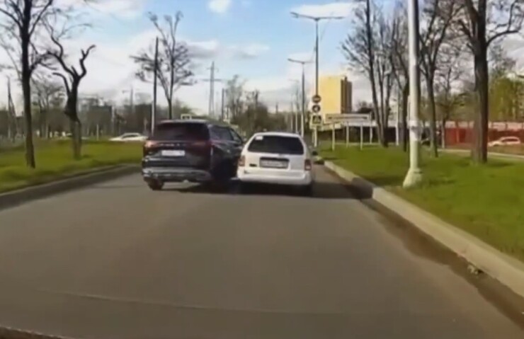 В Мариуполе водитель кроссовера пытался объехать стоящий универсал, но тот начал движение, в результате чего произошло столкновение. Момент ДТП попал в объектив видеорегистратора очевидца.