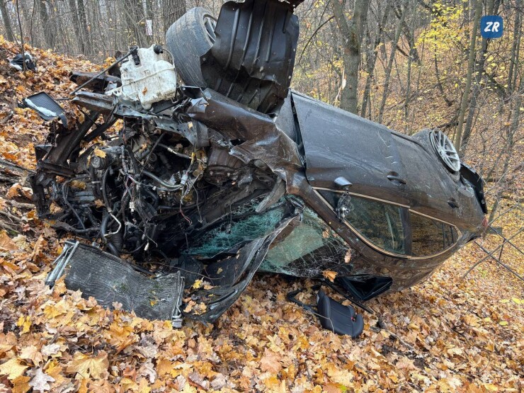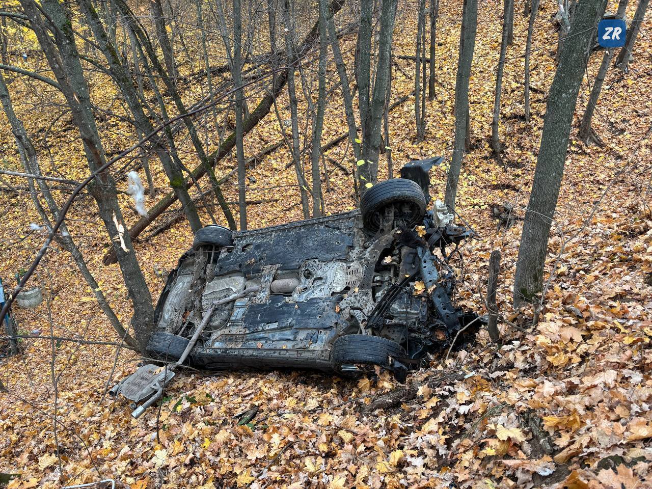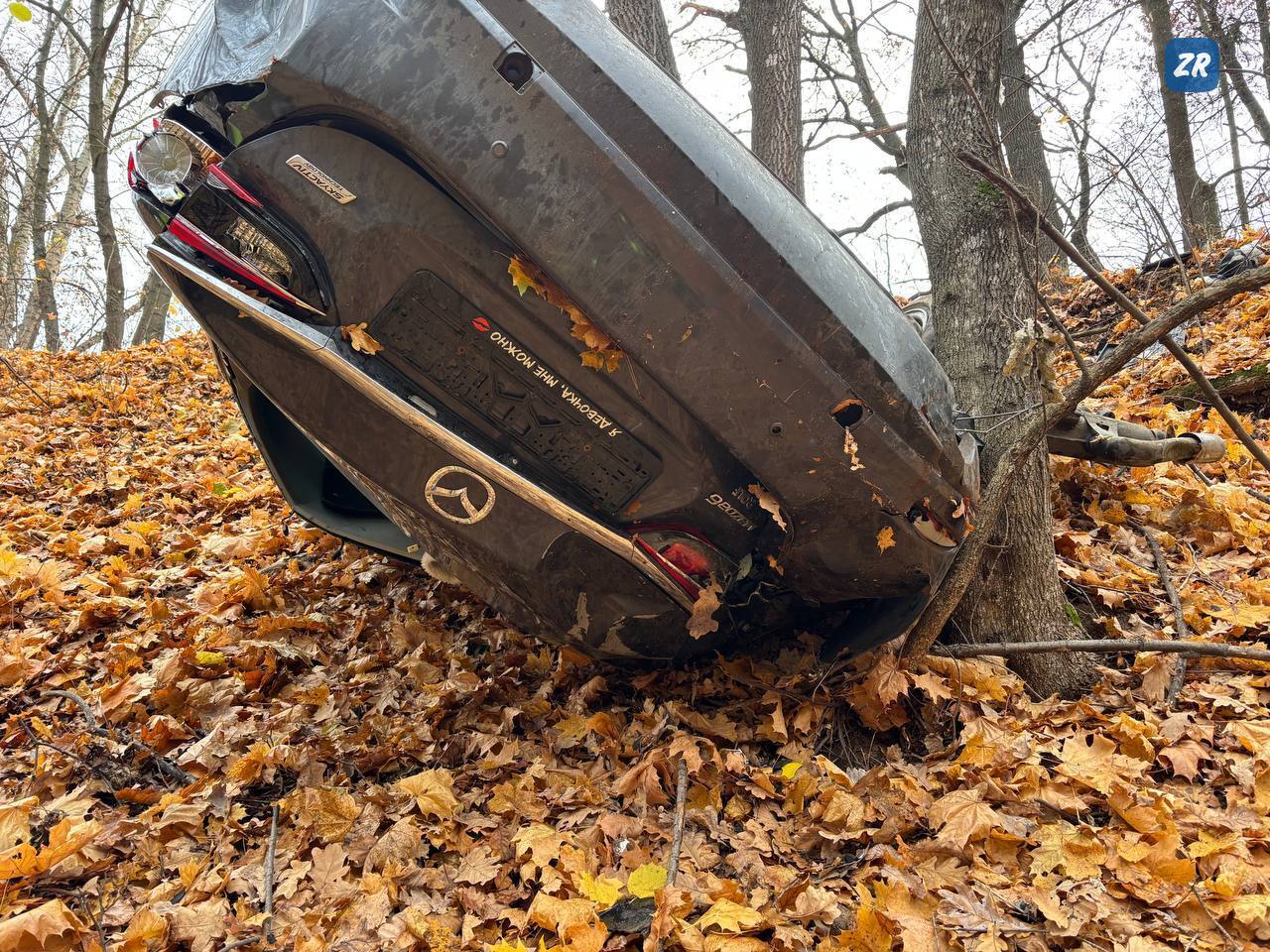 Согласно предварительной информации, 33-летняя женщина, управлявшая автомобилем Mazda 6, не справилась с управлением, в результате чего машина снесла забор и упала в овраг, столкнулась с деревом, а затем перевернулась, оказавшись около родника. Автоледи в момент удара вылетела из машины и ударилась головой о дерево. Также из машины выбросило детское кресло.