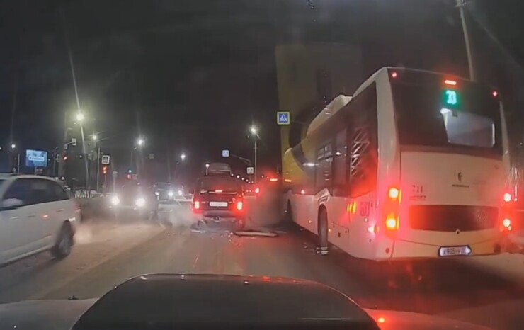 Афтар! Ты куда смотришь? Очевидно же, что два долбойоба перед автобусом перестроились на его полосу, а первый столкнулся с Нивой из-за чего встал колом на зелёный сигнал светофора!