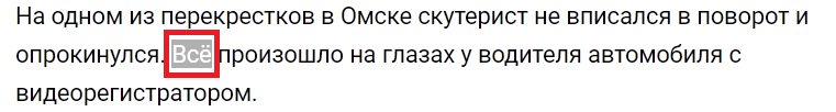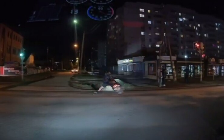 На одном из перекрестков в Омске скутерист не вписался в поворот и опрокинулся. Всё произошло на глазах у водителя автомобиля с видеорегистратором.