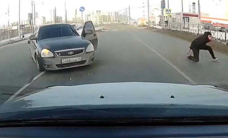 ДТП произошло в Омске на перекрестке Взлетная- Крупской. «Лада Приора» столкнулась с автомобилем. В момент столкновения водитель вылетел из машины на проезжую часть, после чего в «Ладу» врезался автомобиль с видеорегистратором.
