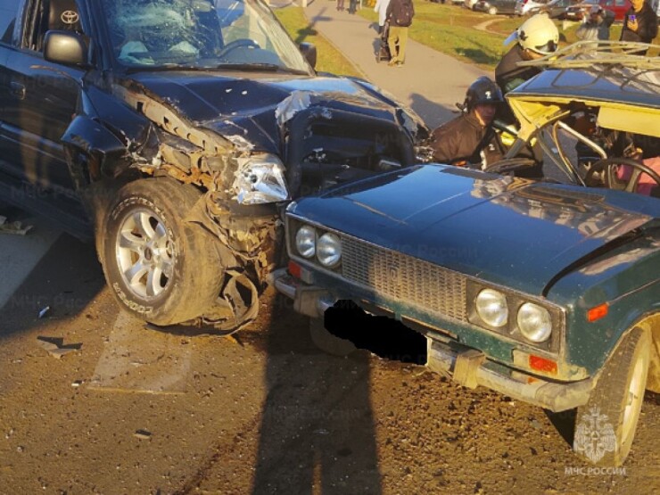 Судя по вмятине изнутри на лобовом в ЛэндКруизере ремнём водитель не пользовался.