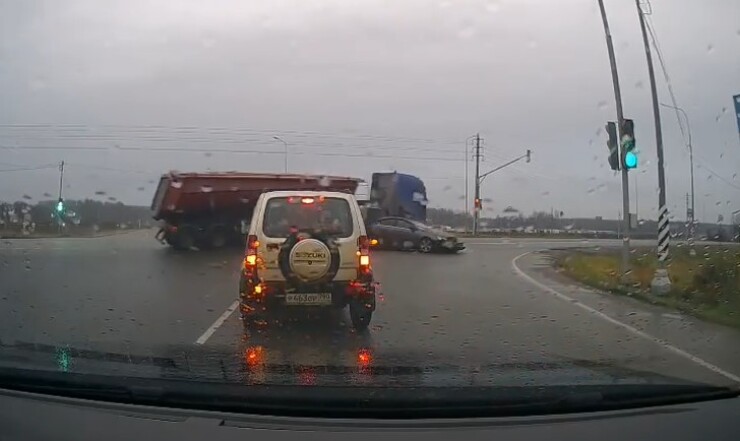 Ну грузовой то тоже на красный поехал.
