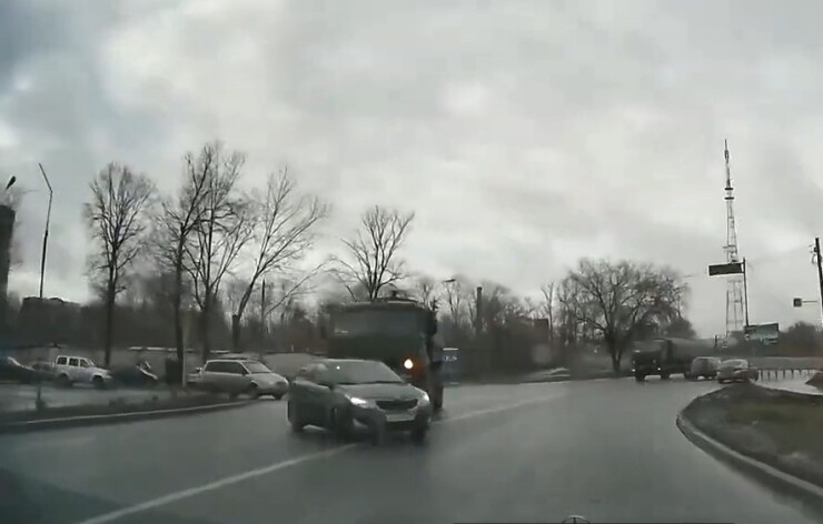 ДТП произошло в Рязани на Яблочкова. По словам автора ролика, водитель легковушки при перестроении пошел на таран КамАЗа.