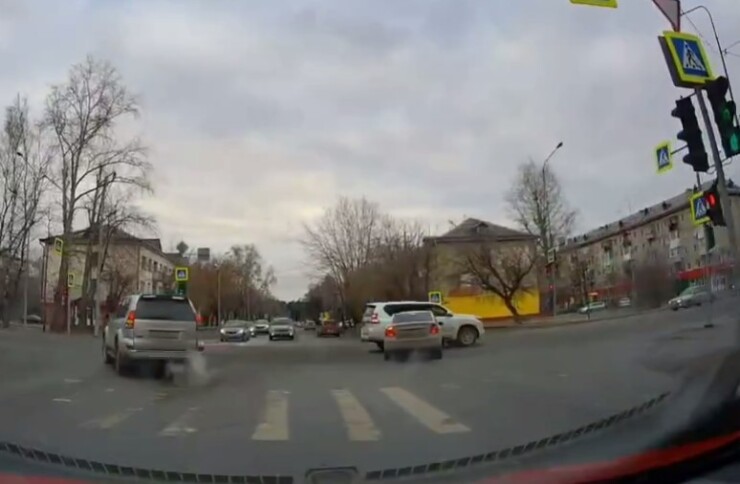 ДТП произошло в Тюмени на пересечении улиц Судоремонтной и Дружбы. Белый внедорожник Toyota Land Cruiser Prado пролетал перекресток на красный и столкнулся с «Фордом». Момент столкновения зафиксировал видеорегистратор очевидца.