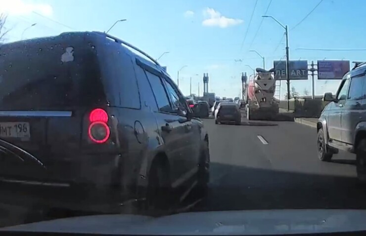 ДТП произошло в Петербурге. По словам автора, он включил левый поворотник и его начали пропускать на Невский путепровод, моргнув дальним, а тип сзади меня решил влезть следом за ним.