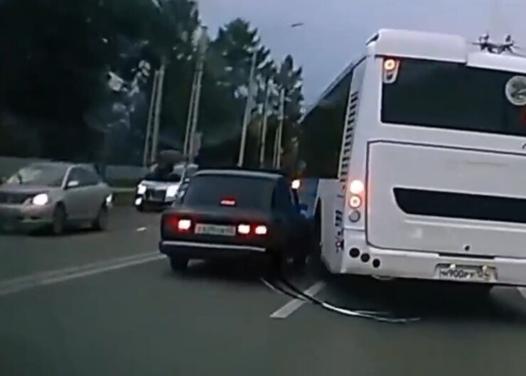 ДТП на улице Высотной в Красноярске. Водитель автобуса включил поворотник и начал перестраиваться, не поглядев по сторонам.