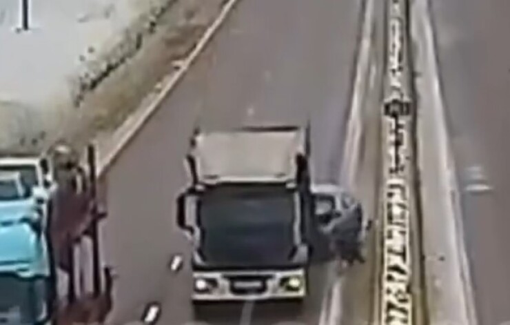 Водитель легковушки не успел среагировать и врезался в грузовик, после чего автомобиль отбросило в барьерное ограждение. К счастью, в этом ДТП никто не погиб.