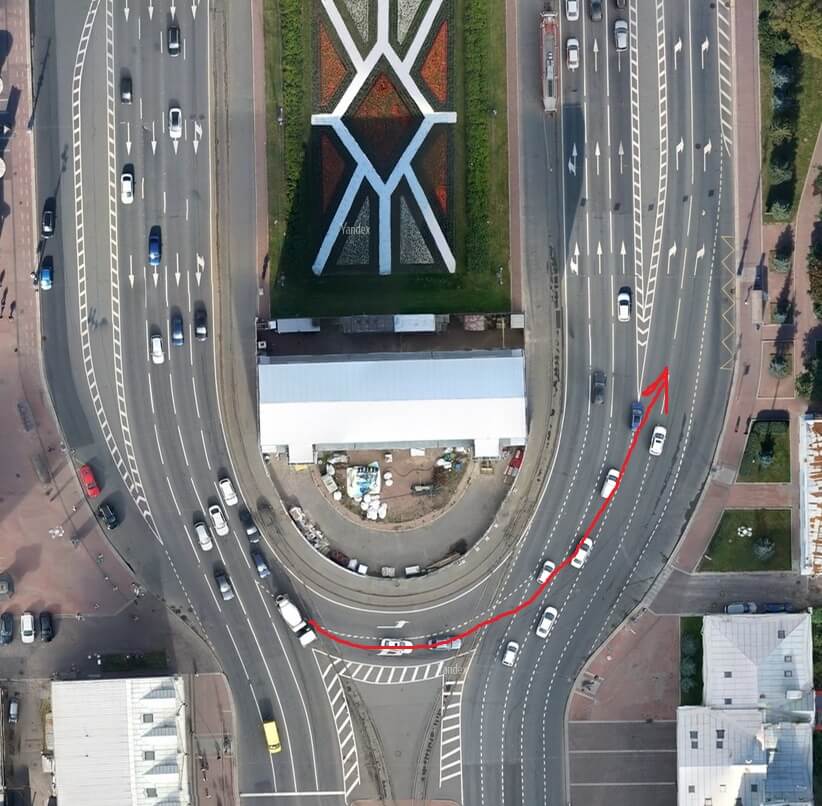 чо там сложного то?…всё интуитивно просто. Единственное, что сложно было вырулить снизу на разворот налево, а там перестраиваться в крайнюю правую полосу для поворота на набережную (вроде)