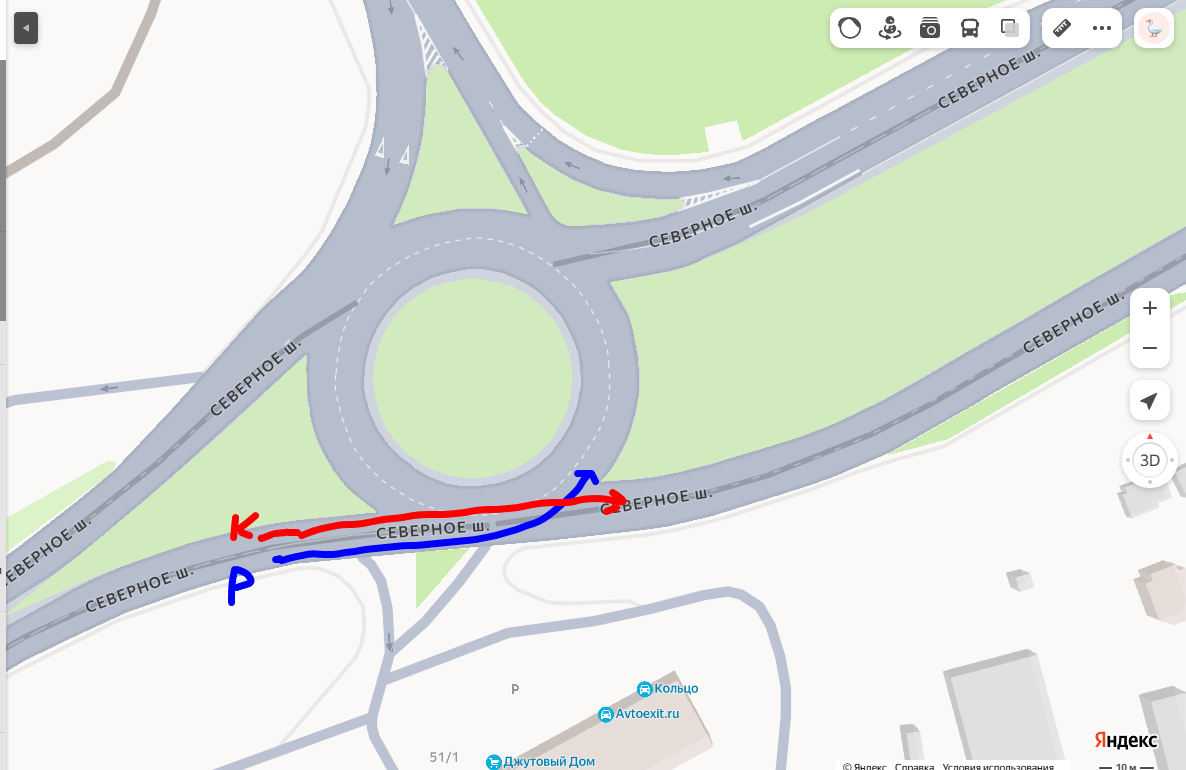 съезд с кольца осуществляется с крайнего правого ряда, лексус как раз это и нарушил