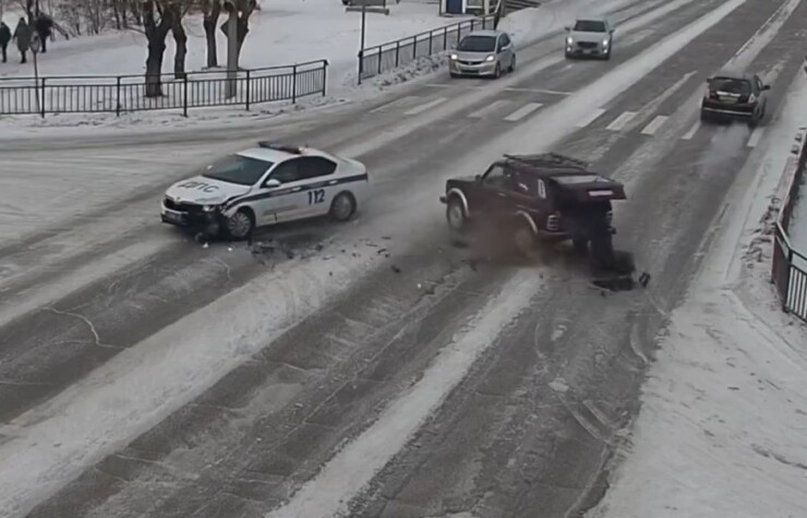 В Улан-Удэ водитель «Нивы» не пропустил автомобиль ДПС, который двигался через перекресток с включенными маячками и сиреной. В результате ДТП из багажника автомобиля на дорогу высыпалось все содержимое.