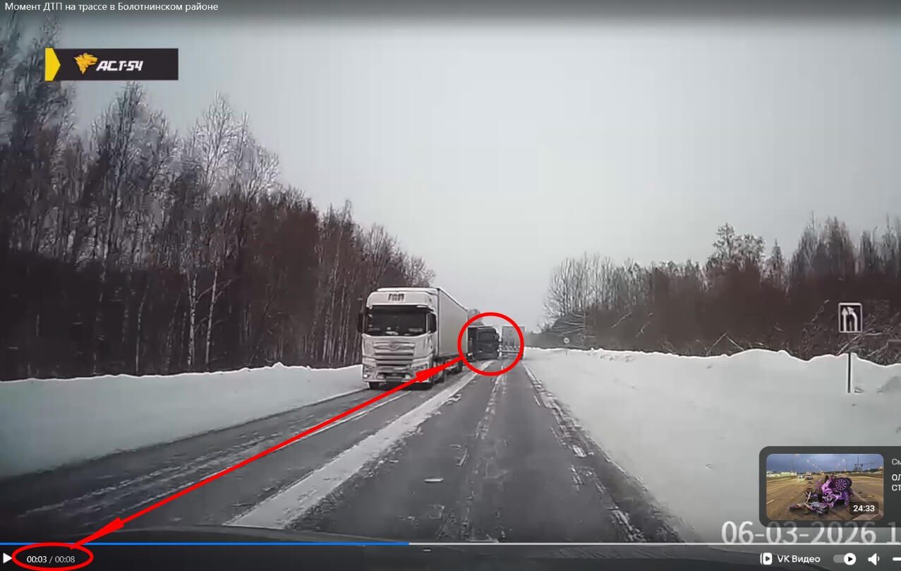 ДТП произошло 6 марта на трассе Р-255 «Сибирь» в Болотнинском районе Новосибирской области. Водитель фуры не справился с управлением, задел попутный грузовой автомобиль, после чего выехал на встречную полосу и совершил столкновение с японским кроссовером Mitsubishi.